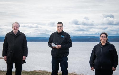 SEPT-ÎLES, le 4 mai 2021 – Le président et chef de la direction d’Aluminerie Alouette, M. Claude Gosselin, en compagnie du Chef de Uashat mak Mani-utenam et président d’honneur de la première campagne du Comptoir alimentaire Nishk, M. Mike McKenzie, confirme aujourd’hui un partenariat d’envergure à hauteur de 120 000 $ afin de soutenir l’organisme et ses bénéficiaires.